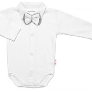 Svetřík má zapínání na knoflíky, body zapínání na cvočky, motýlek je upevněný na tenké gumičce.