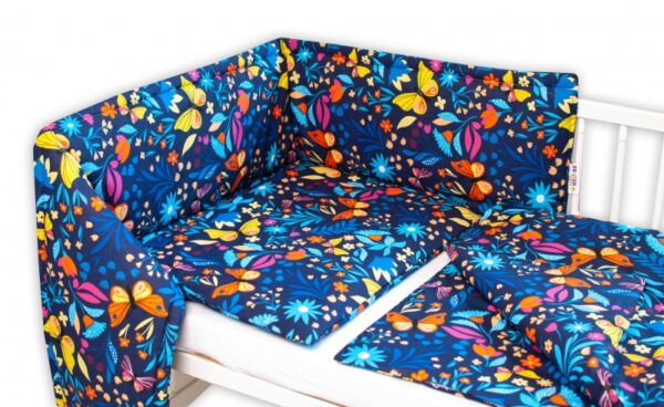 120×90 – povlečení na peřinku 120x90cm, povlečení na polštářek 40×60 cm, mantinel 60x60x60cm – na postýlku 120x60cm.