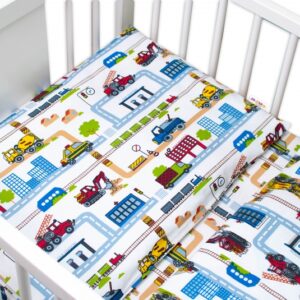 Baby Nellys 3-dílná sada Mantinel s povlečením – Stavební stroje, bílá, 135 x 100