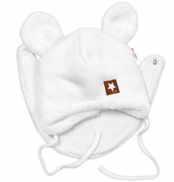 Dvouvrstvá zimní pletená čepice na zavazování, zateplená kožíškem v sadě s šátkem.