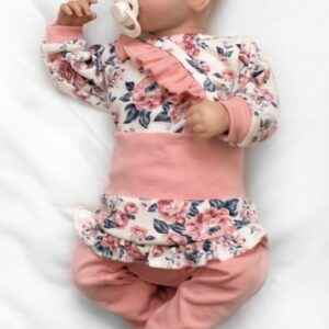 Jemné detaily a pečlivé zpracování dodávají celkovému vzhledu nádech elegance, zatímco měkkost a přizpůsobivost materiálu umožňují volný pohyb dítěte.