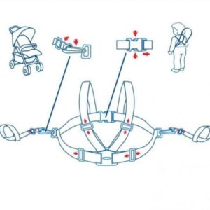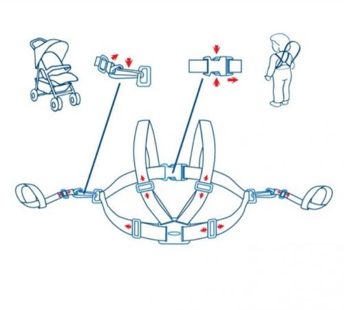 Regulace délky řemínků umožnuje přuzpůsobit je dětské výšce a věku, a také velikosti kočárku.