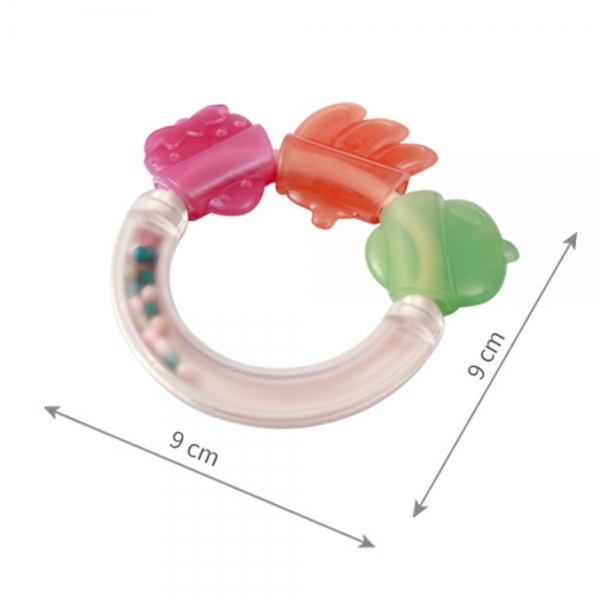 Ergonomický design: Kousátko-chrastítko je navrženo tak, aby dokonale padlo do malých dětských ručiček, což usnadňuje jeho držení a manipulaci.