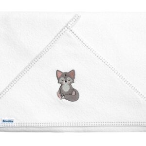 Rozměr 100 x 100 cm spolu s prostornou kapucí zdobenou roztomilou výšivkou zajišťuje praktický a stylový design.