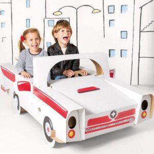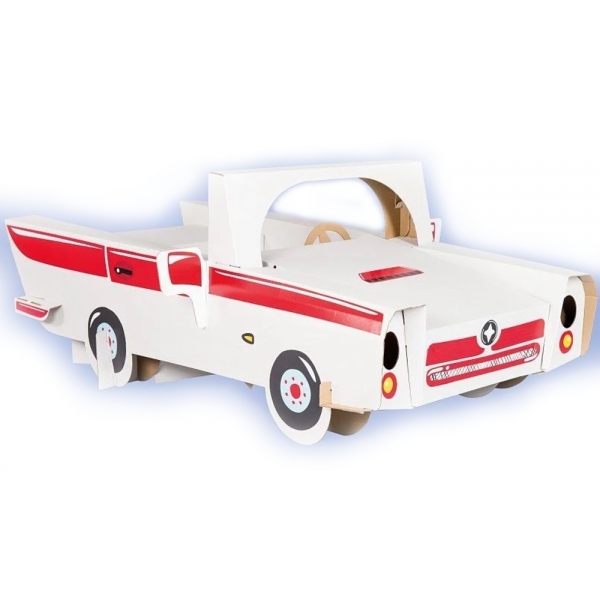 Auto je vyrobeno z 5-vrstev bílého vlnitého kartónu.