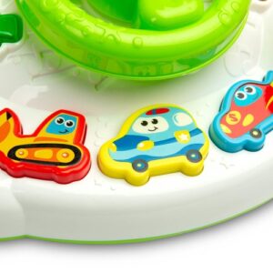 Volant je vybaven tlačítky a světly, které v kombinaci s reproduktorem přehrávají příjemné melodie a zvuky aut.