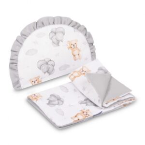 Baby Nellys Oboustranný 5-ti dílný komplet do kočárku s minky Cute Teddy, bílá/šedá