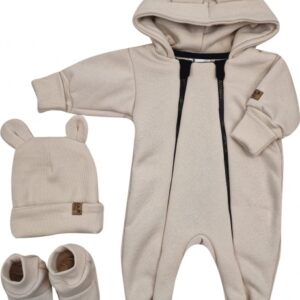 Oteplený dětský overal bez šlapek s kapucí + čepička, 2D, modrý, vel. 68