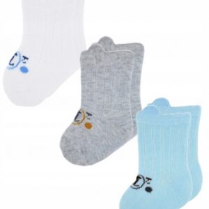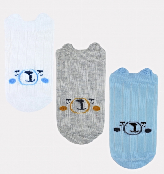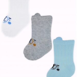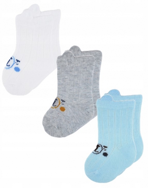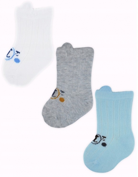 Kojenecké ponožky, 3 páry – Medvídek, bílá/modrá/šedá, vel. 12-18 m