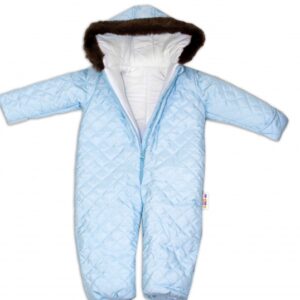 Kombinéza s kapucí a kožíškem Baby Nellys ®prošívaná, bez šlapek – sv. modrá, vel. 98