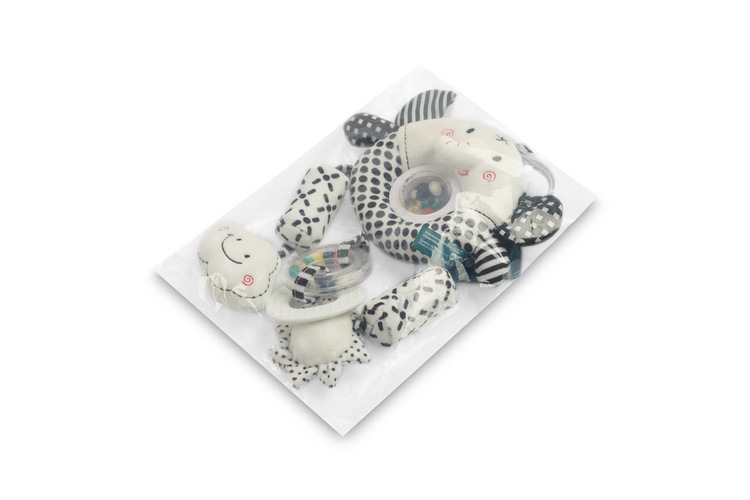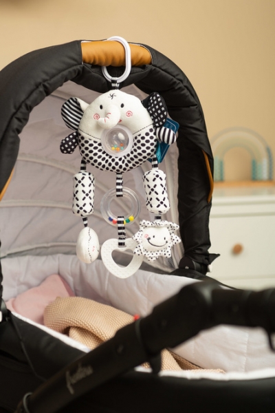 Kontrastní závěsná plyšová hračka nejen na cesty black&white.