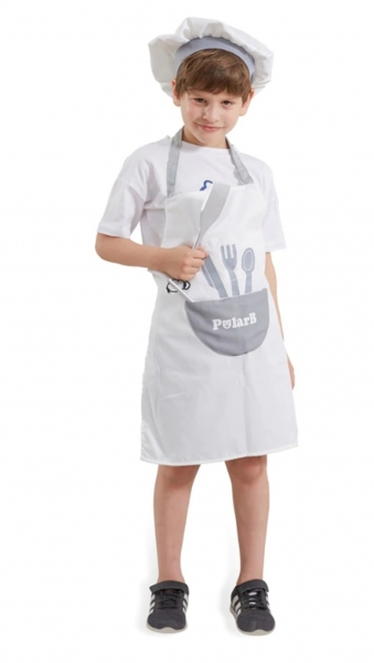 Sada obsahuje nastavitelnou zástěru, čepku.