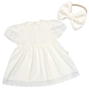 Dopřejte svému miminku krásný a pohodlný outfit — bílé šatičky s čelenkou Baby Nellys udělají dojem při každé příležitosti!.