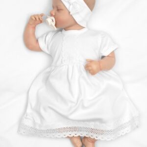 Bavlněné šatičky s čelenkou Baby Nellys — elegantní komplet pro miminka | Luxusní šaty s krajkou.