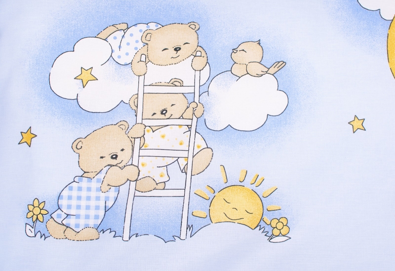 Mantinel s povlečením Premium, 3D sada, Medvídek na žebříku, modrý, 135x100cm