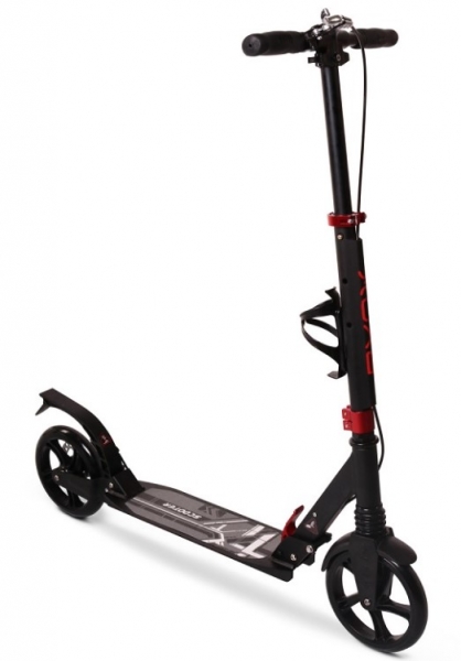 Díky nastavitelným řídítkům ji může využívat celá rodina. Řídítka snadno přizpůsobíte výšce jezdce/jezdkyně (maximální výška řídítek je 99 cm). Příjemnou a plynulou jízdu zajistí kvalitní kolečka z polyuretanu o velikosti 200 x 30 mm. Kolečka mají paprskový střed, jsou tak lehčí a vhodná na jízdu po ulici. Tato hliníková koloběžka je vybavena přední brzdou. Disponuje dvojitým zavěšením – vepředu a vzadu. Součástí koloběžky je boční stojan.