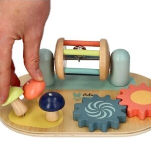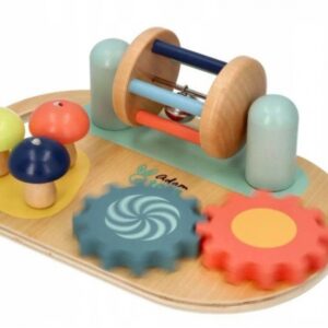 Nejste příznivcem velkých hraček jako jsou manipulační stolky? Máme něco, co vás bude zajímat. Malá pracovní deska pro batole k umístění na rovnou plochu skvěle nahradí manipulační stolek. Prvky na tabuli jsou barevné a jistě upoutají pozornost dítěte. O zajímavou zábavu se postarají ozubená kola na přívlač, houby na ohýbání nebo naviják. Hra má pozitivní vliv na rozvoj koordinace ruka-oko a manipulačních schopností malých dětí.