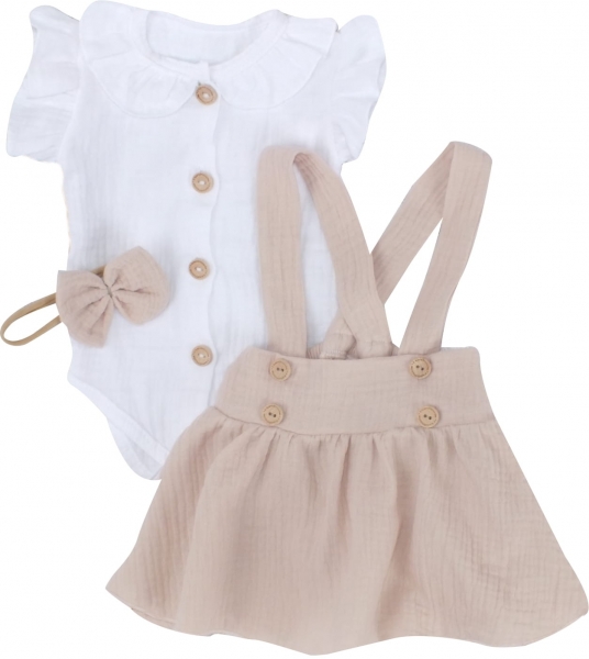 Krásná univerzální 3dílná mušelínová bavlněná sada pro malou slečnu.