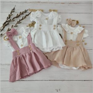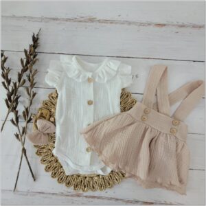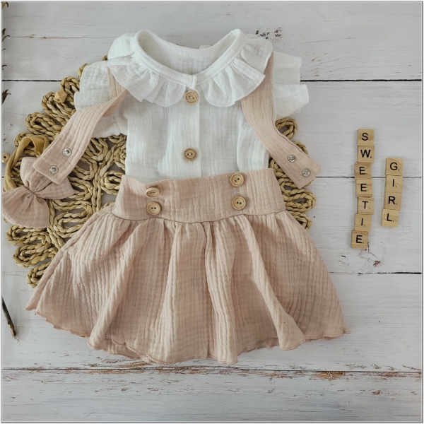 Krásná univerzální 3dílná mušelínová bavlněná sada pro malou slečnu.