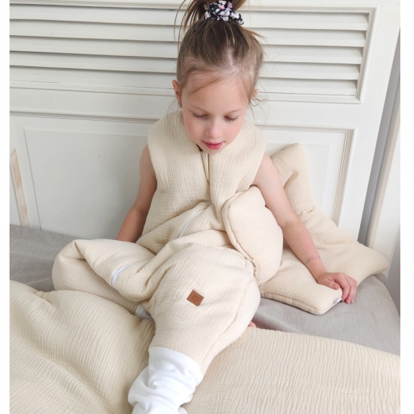 Dětský letní spací vak se zahrnovacími nohavičkami je vyrobený ze 100% bavlny/mušelínu.