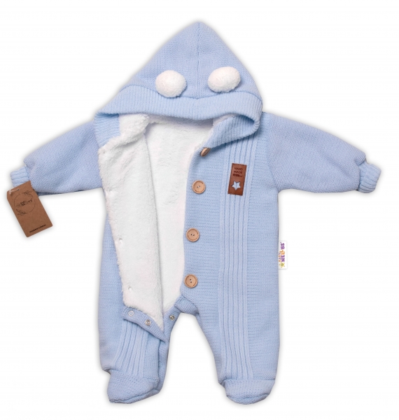 Pletená kombinéza/overal LUX STAR s kožíškem – dvouvrstvá, sv. modrá, vel. 68
