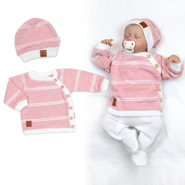 Pletená sada pro miminko s jemným proužkem 2D, lux – růžová, bílá