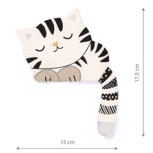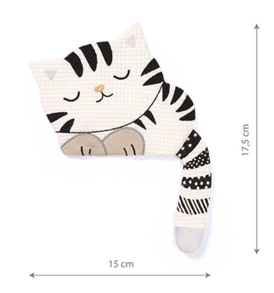 Šustík ve tvaru kočky je hračka a plyšák v jednom. Má smyslové hodnoty. Hrou podporuje rozvoj smyslů dítěte. Koťátko je vyrobeno z bavlny příjemné na dotek. Náplň jemně šustí. Šustěnít stimuluje sluch a hmat. Vyčnívající ocas a měkké tlapky kotěte povzbuzují k učení se chvatu. Různé textury stimulují rozvoj jemné motoriky. Kontrastní barvy stimulují smysl pro zrak.