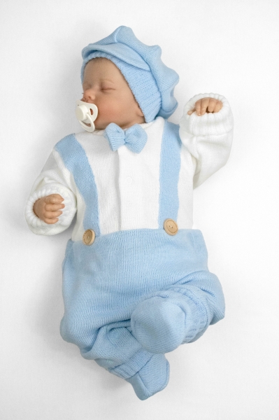 Rostoucí pletený overálek 3D Hand Made malý Elegán s čepičkou a pletenými botkami.