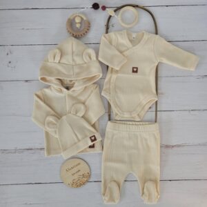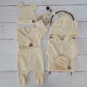 Kabátek: celková délka od krku 27,5 cm, hrudník 2 x 23 cm, délka rukávu 17 cm