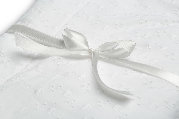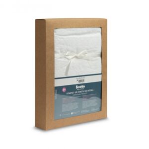 Jedna strana sady je vyrobena z kvalitní bavlny s jemným anglickým vyšíváním, zatímco druhá strana je z měkkého plyše, který něžně zahřeje vaše miminko.