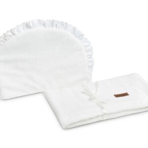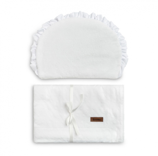 Dodejte křtu vašeho děťátka eleganci s naším luxusním bílým kompletem do kočárku, který zahrnuje polštářek a lehkou přikrývku.