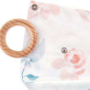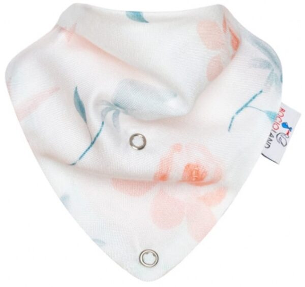 Šátek s dřevěným kousátkem svým tvarem a způsobem výroby plní různé funkce – jak bryndáček, který zakrývá oblečení miminka při krmení, tak šátek chránící krk, který je součástí oblečení miminka. Výrobek je vyroben ze dvou vrstev 100% bavlněného materiálu, navíc má kousátko vyrobené z javoru.