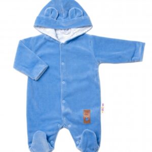 Semiškový, velurový overal s kapucí Baby Nellys New Bunny, modrý, vel. 86