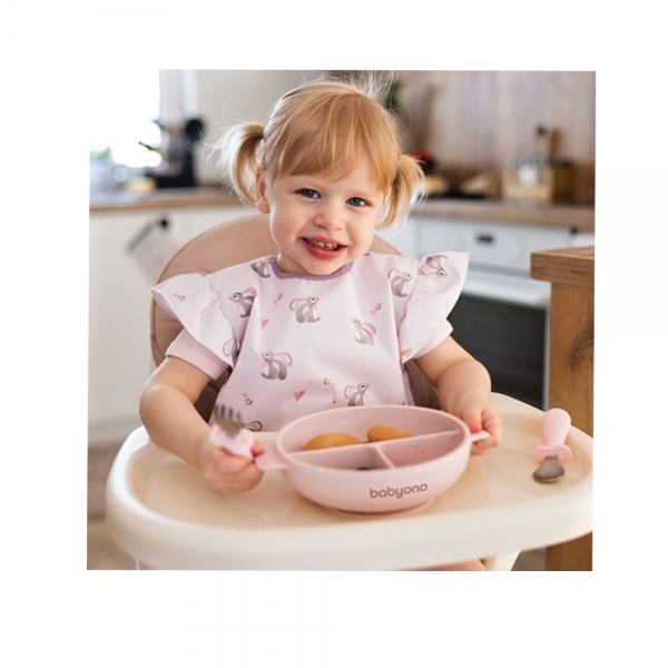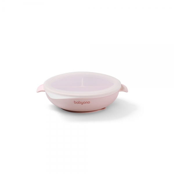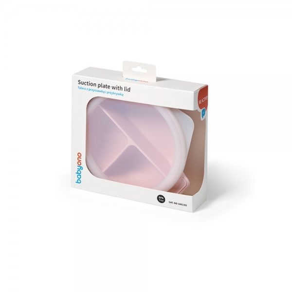 Dělený talíř s přísavkou a víčkem BabyOno – ideální pro zavádění příkrmů a metodu BLW.
