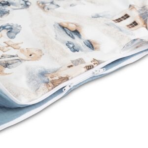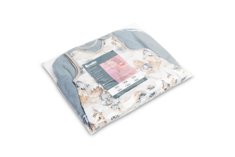 Dětský spací pytel je navržen tak, aby poskytoval vašemu miminku teplo a bezpečí již od prvních dnů života (vhodný pro děti 0–9 měsíců). Vyroben z měkké bavlny s antialergickým polstrováním, je ideální pro citlivou pokožku dítěte. Vnitřní část a zadní strana jsou z příjemné **mušelínové bavlny**, která je prodyšná a jemná na dotek. Spací pytel neobsahuje žádné tvrdé nebo dráždivé prvky, které by mohly narušit pohodlí dítěte. Díky praktickému oboustrannému zipu, který je veden po celém obvodu pytle, snadno vyměníte plenku, aniž byste museli dítě vyndávat.