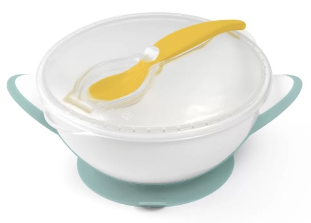 Přísavka zabrání posouvání misky po stole a tím zamezí vylevání pokrmu.