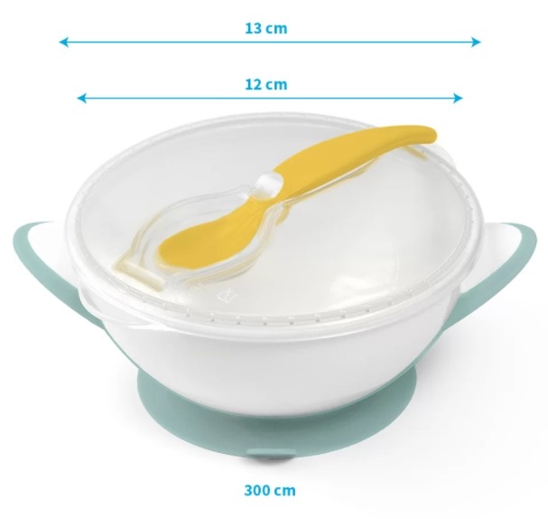 Miska má speciální hygienické uschování lžičky ve víčku.
