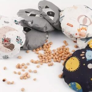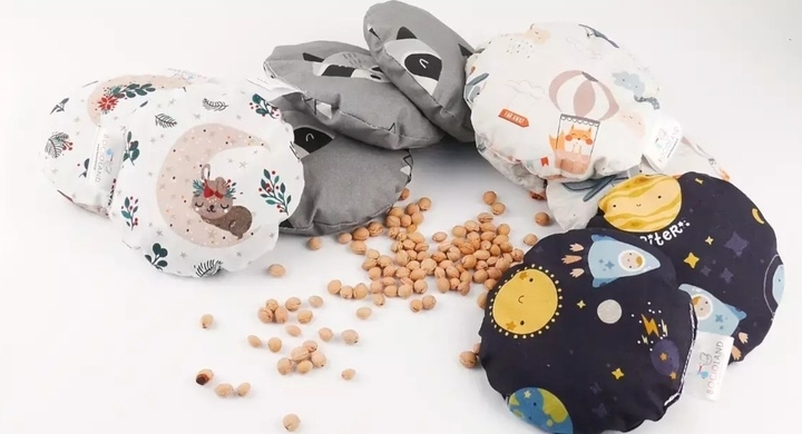 Sada nahřívacích bavlněných polštářků s třešňovými pecičkami.