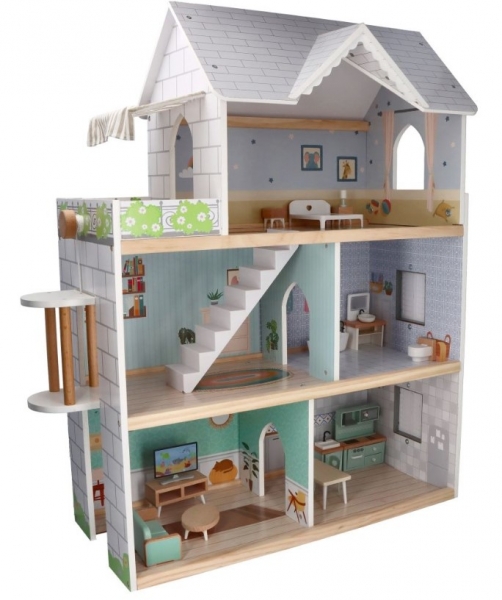 Každá dívka sní o vlastním domečku pro panenky, protože je to místo, kde si může vytvářet své vlastní světy a vyjadřovat své emoce. Krásná a velká dřevěná vila pro panenky udělá velkou radost každé holčičce. Dům má tři podlaží, a protože je otevřený, lze jej jednoduše zařídit a zařídit. Je vybaven výtahem, který dokáže dopravit obyvatele do prvního patra a schodištěm vedoucím z prvního patra do podkroví. V posledním patře je také terasa se zastřešením.
