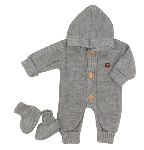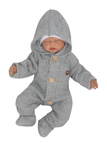 Z&Z Dětský pletený overálek s kapucí + botičky, šedý, vel. 86